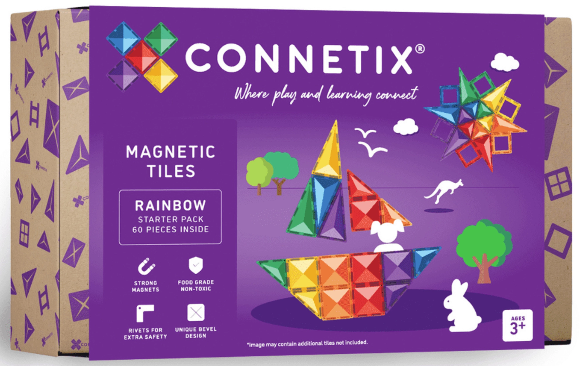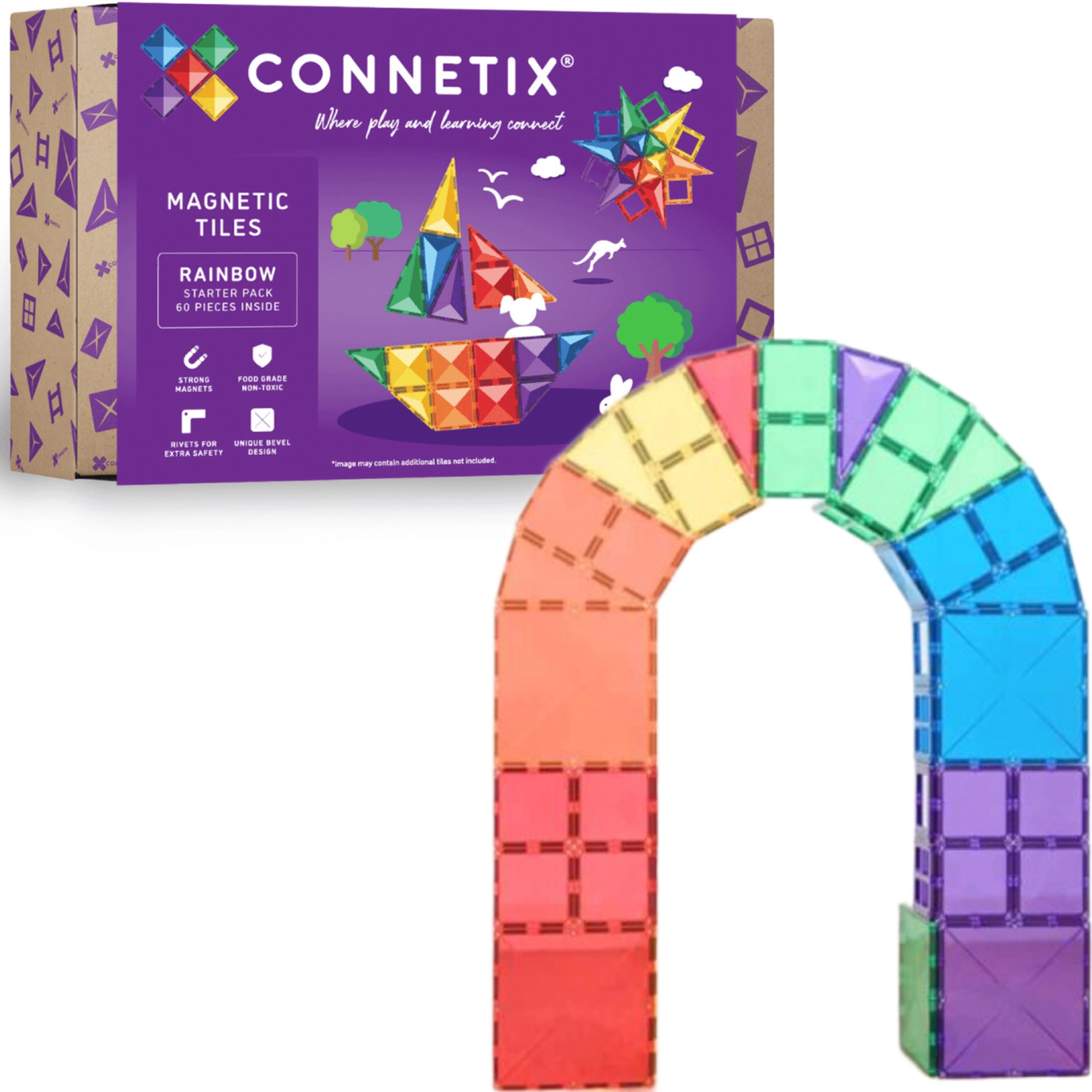 De CONNETIX Rainbow Starter Pack bevat 60 hoogwaardige, transparante magnetische tegels in intense kleuren, met afgeronde randen en zeer sterke neodymiummagneten voor stabiele constructies. Kinderen zijn dol op de karakteristieke “klik” bij het verbinden, terwijl ze spelenderwijs wiskunde, natuurkunde, techniek en kunst ontwikkelen.