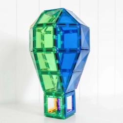 Verschillende vormen en transparante kleuren maken het mogelijk om kastelen, torens, bruggen en raketten te bouwen. Kinderen ontdekken spelenderwijs geometrie en ruimtelijke relaties bij elke speelsessie.