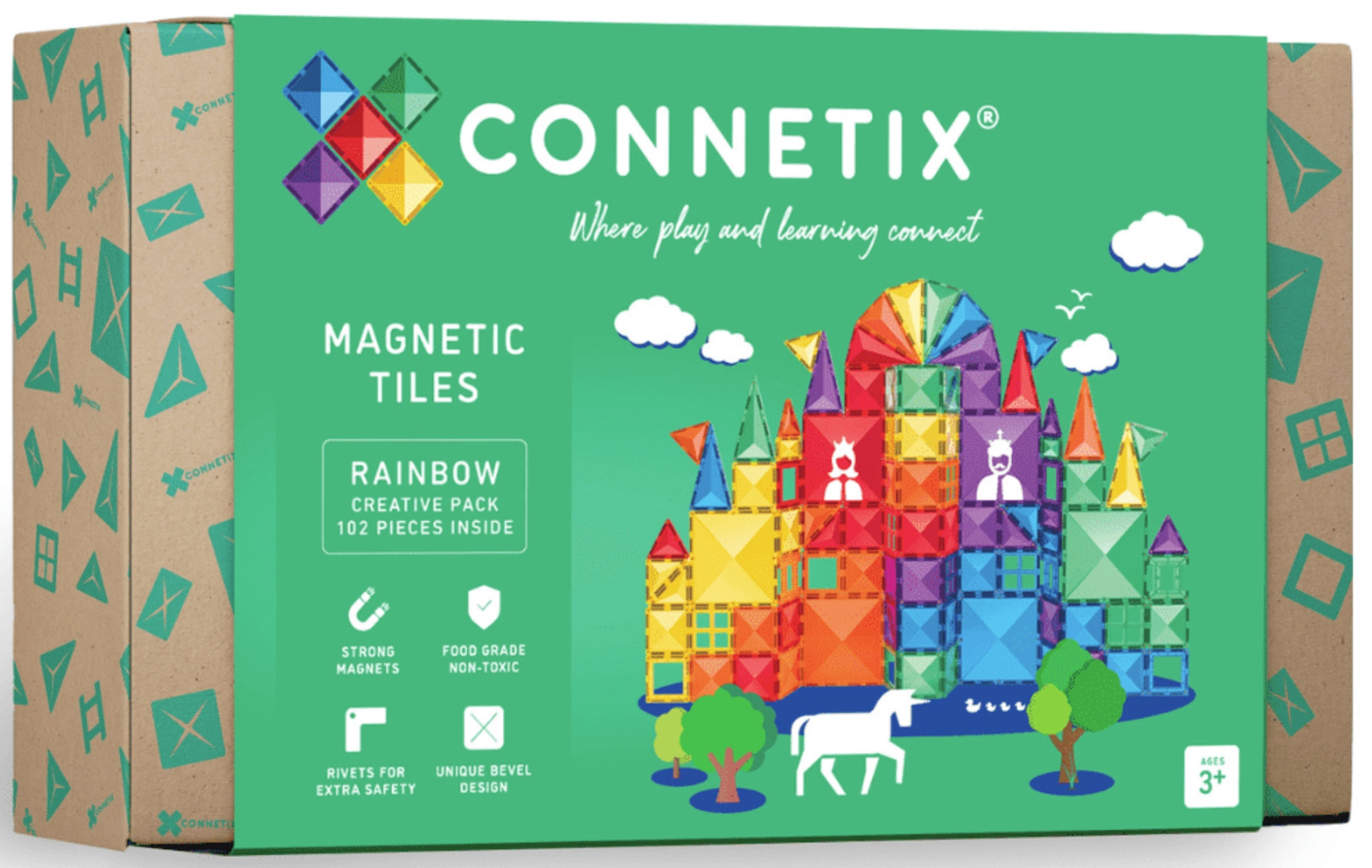 De CONNETIX Rainbow Creative Pack biedt kinderen een speelse manier om geometrie, balans en de principes van magnetisme te ontdekken. Gekleurde, transparante onderdelen in diverse vormen klikken stevig vast dankzij de sterke magneten en maken het bouwen van 2D- en 3D-modellen mogelijk. Ideaal voor thuis, kinderopvang, Montessori en sensorische therapie.