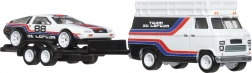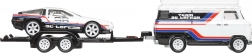 Geniet van eersteklas afwerking en een racingsfeer met de transportsset Team DeLorean. De witte trekker met aanhanger vervoert de sportwagen DMC DeLorean #78 in een zwart-witte combinatie met rode en blauwe strepen. De set is klaar om meteen tentoon te stellen of mee te spelen – haal hem uit de doos en ga het circuit op.