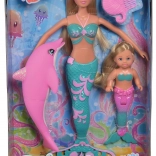 Stap in een fantasiewereld met de tweedelige zeemeerminnenset Steffi Love – de oudere zus Steffi en haar jongere zusje Evi betoveren met kleurrijke staarten in turkoois‑roze tinten en gedetailleerde vinnen. Inclusief een roze dolfijn die de zeemeerminnen begeleidt op hun onderwaterreizen en een kam in de vorm van een zeepaardje voor het eenvoudig kammen van lange haren.