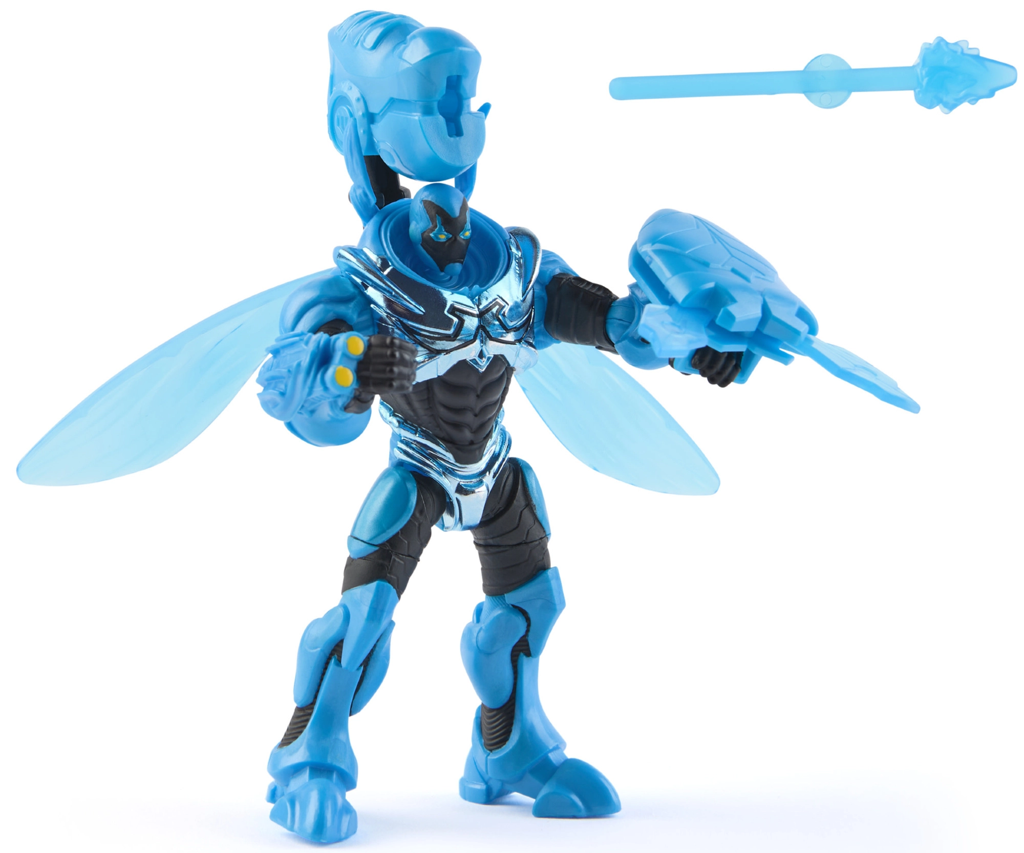 Transparante schilden, vleugels en een wapen geven het spel extra power en verwijzen trouw naar de uitrusting van BLUE BEETLE.