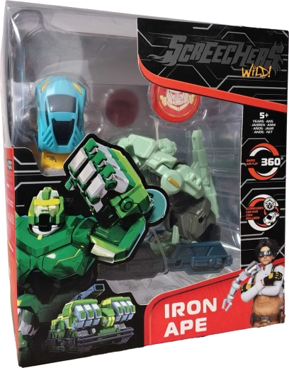 Duik in de actie met de set Screechers Wild! – de transformerende figuur IRON APE, die zich in een oogwenk van een aap in een snel groen auto verandert. Dankzij de bewegende onderdelen, het opvallende design en de meegeleverde energietoken wachten kinderen vanaf 5 jaar talloze dynamische gevechten en speelplezier.