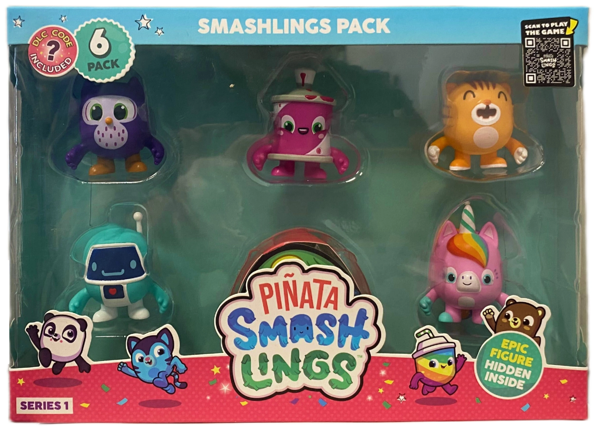 Ontdek de wereld van Piñata Smashlings met deze set van 6 willekeurige figuurtjes uit Serie 1. Elk figuurtje brengt levendige kleuren, schattige details en een portie verzamelplezier. In de verpakking vind je ook een unieke DLC-code om exclusieve beloningen in de game te ontgrendelen – soms zelfs in gouden of zilveren variant.