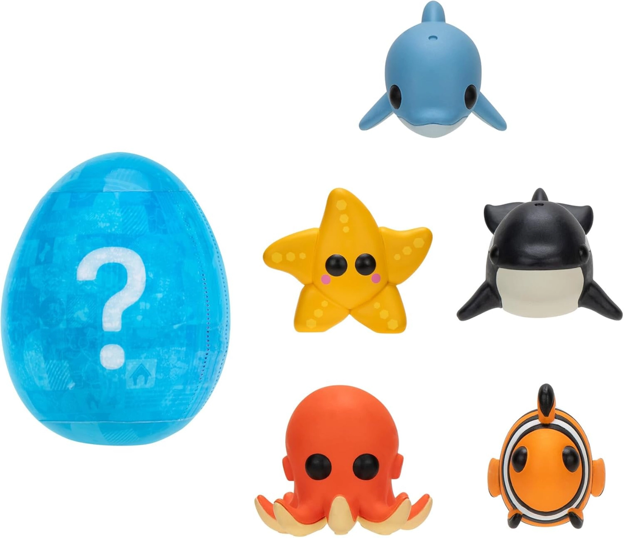 Ontdek de wereld van ADOPT ME in het echt! Deze set van 7 stuks bevat 6 zeedieren en een mysterieus verrassingsei dat tevoorschijn komt zodra je het in water dompelt. Je krijgt kleurrijke, verzamelbare figuurtjes van ca. 3–5 cm, een virtuele code voor de game en plezier voor jonge fans en verzamelaars.