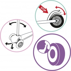 De step ondersteunt de ontwikkeling van evenwicht en coördinatie dankzij de balanceer- (kantel)besturing. Stille wieltjes garanderen comfortabel rijden, zowel op het trottoir als op het speelplein. Kwalitatieve afwerking en duurzame materialen zorgen voor een lange levensduur, ook bij frequent gebruik.