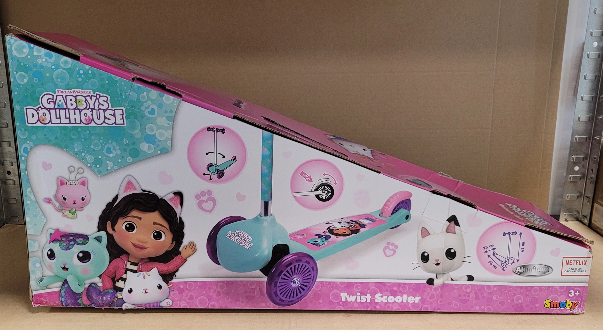 Lichte en stabiele kinderstep met GABBY’S DOLLHOUSE-motief voor kinderen vanaf 3 jaar. Biedt drie wielen voor zekerheid en balans, balanceerbesturing voor eenvoudige bediening, stille wieltjes en een achterste voetrem voor veilig stoppen. Ideaal voor de eerste ritjes en het ontwikkelen van motoriek. Let op: beschadigde verpakking, product is volledig functioneel.