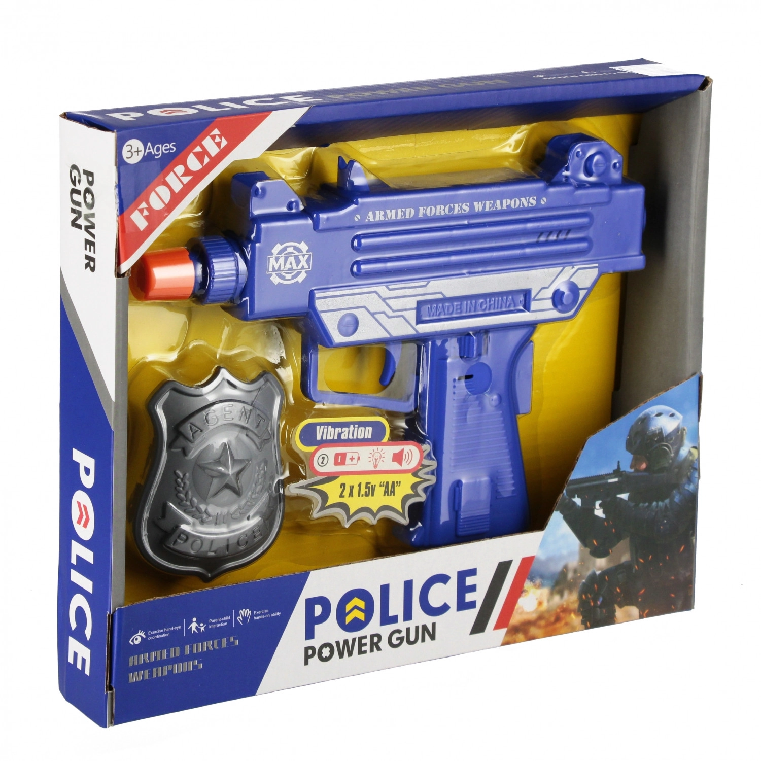 • Inhoud van de verpakking: kunststof speelgoedwapen, politiebadge