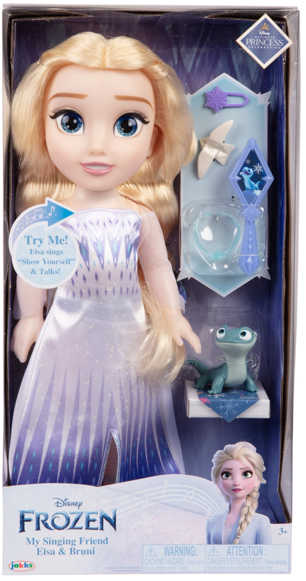 De Elsa-pop van Jakks Pacific brengt kinderen de geliefde heldin uit Frozen – Het ijzige koninkrijk. Met de interactieve knop op haar lijfje zingt Elsa een deel van “Show Yourself” en stimuleert zo rollenspel, meezingen en het verzinnen van eigen verhalen. De glinsterende ogen en de prachtige jurk uit de tweede film geven de pop charme en een authentieke uitstraling.