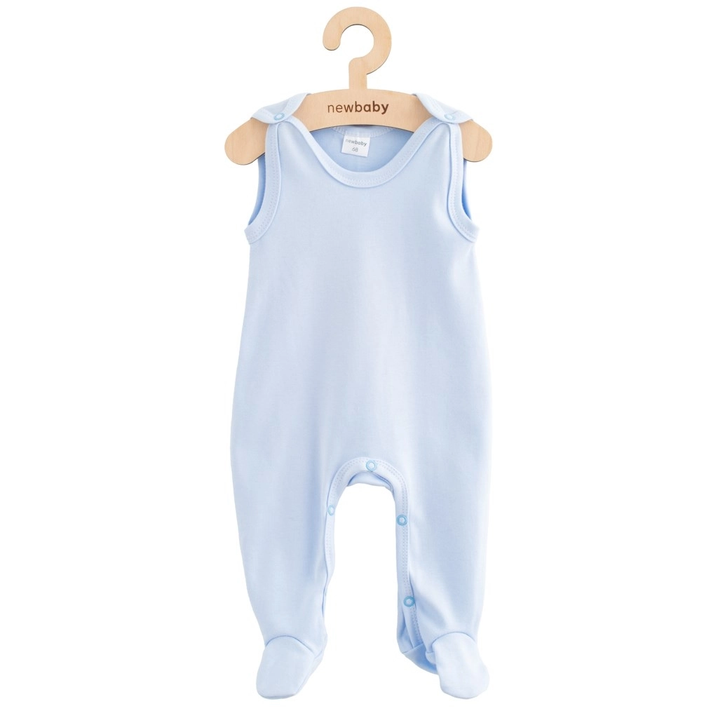 Comfortabele babystrampler NEW BABY Classic II in blauwe kleur van zachte 100% katoen. Zacht en ademend materiaal zorgt de hele dag voor comfort, praktische drukknoopsluiting op de schouder en tussen de beentjes maakt aankleden en verschonen eenvoudig. Certificering OEKO‑TEX Standard 100 bevestigt de veiligheid voor de gevoelige babyhuid.