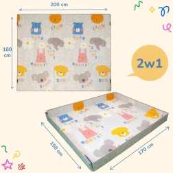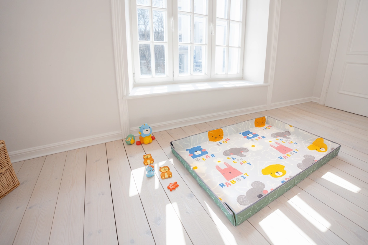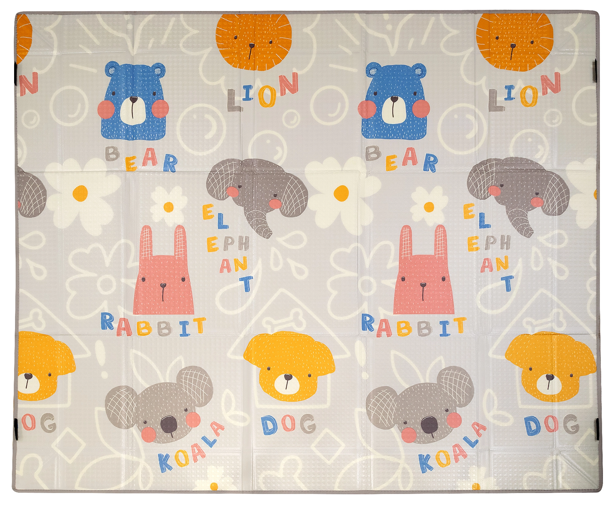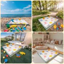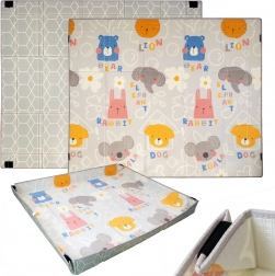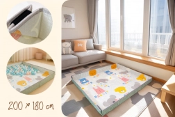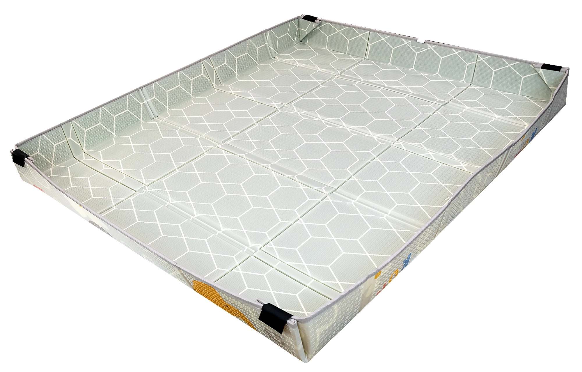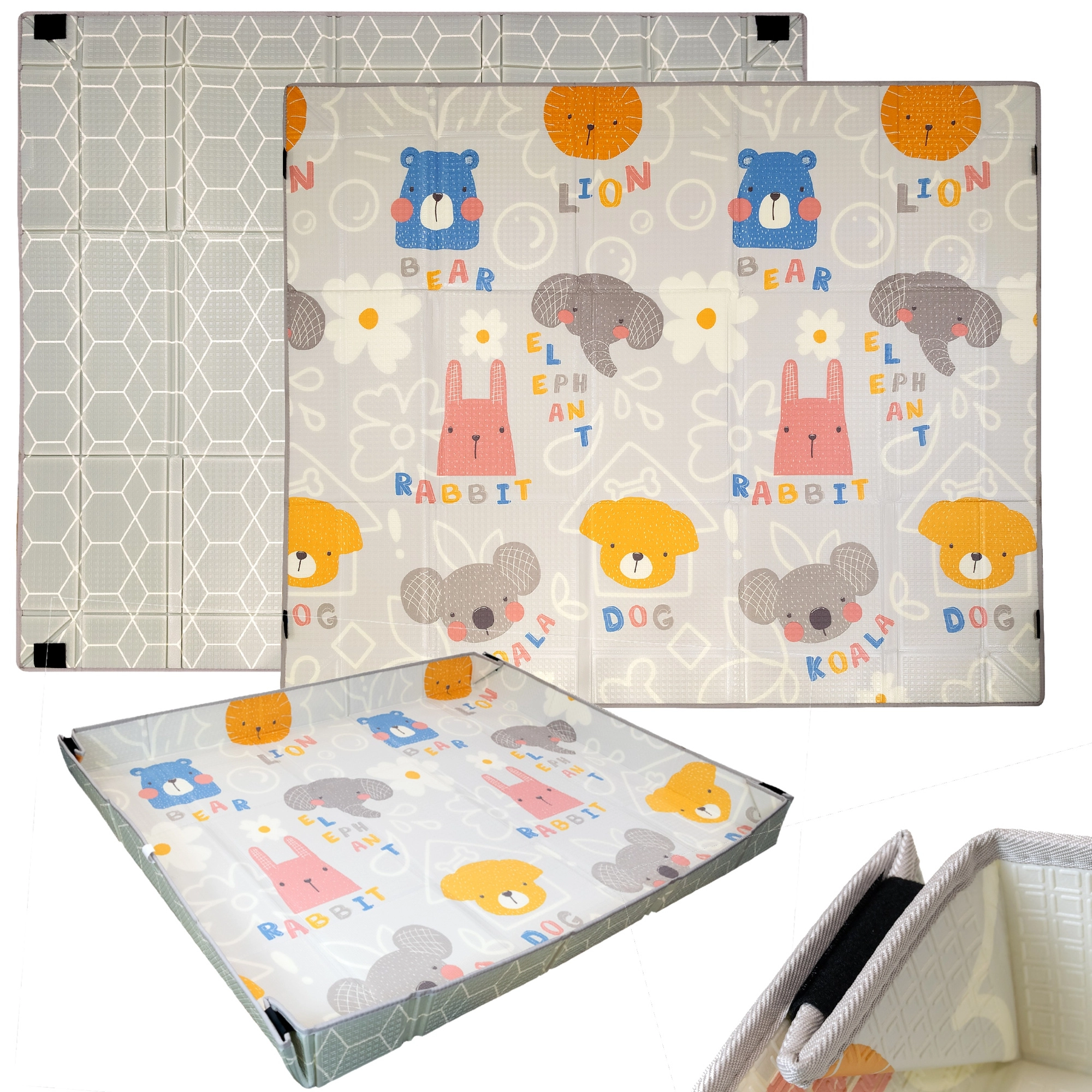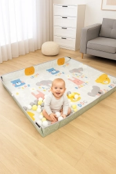 Grote en zachte foam mat van XPE die baby’s en peuters veiligheid en comfort biedt tijdens spelen, kruipen en de eerste stapjes. Hij is dubbelzijdig, opvouwbaar, waterafstotend en dankzij klittenbandranden verander je hem eenvoudig in een box of een mini ballenbad. Perfect voor de kinderkamer, woonkamer en tuin en vrij van schadelijke stoffen volgens EN71 en REACH.