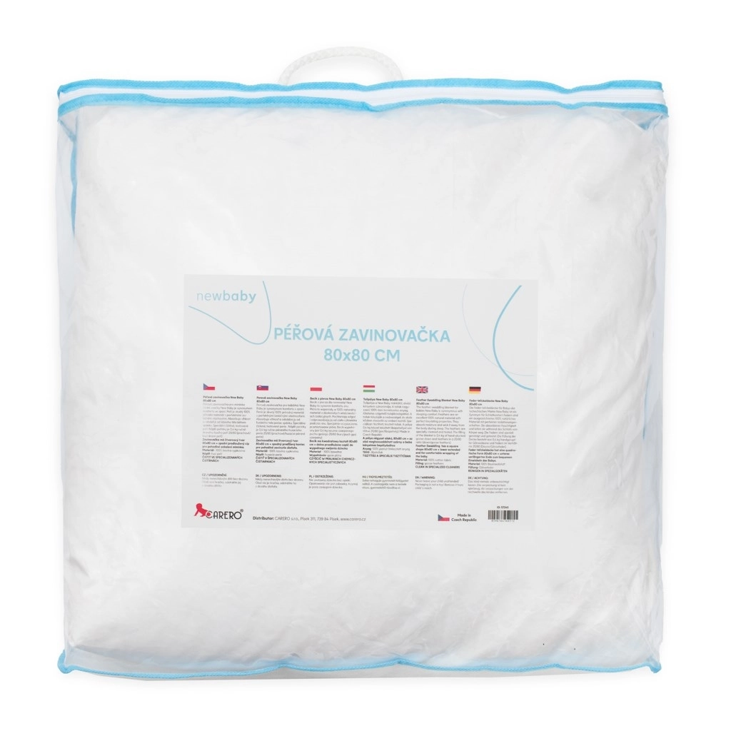 Deze luxe donzen inbakerdoek van 80 × 80 cm is ontworpen voor het veilig en comfortabel inpakken van een pasgeborene. Dankzij speciaal gereinigd en getest dons houdt hij prettige warmte zonder oververhitting vast en geeft hij de baby een gevoel van geborgenheid. Ook te gebruiken als een lichte donsdeken.
