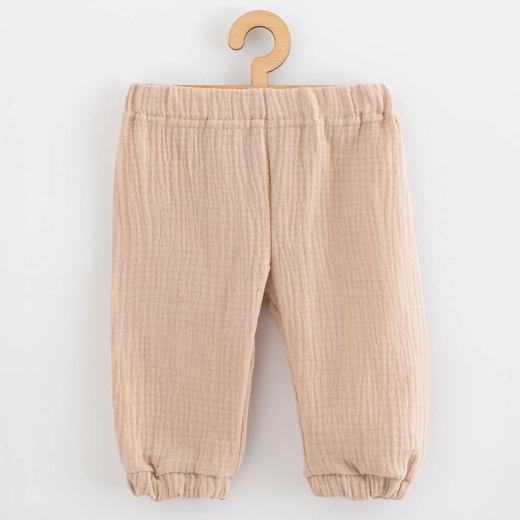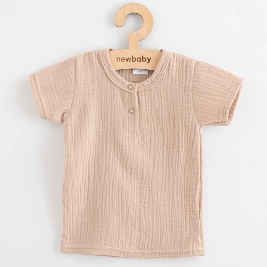 Stijlvolle en praktische 2-delige set NEW BABY van zachte mousseline voor baby’s. Bevat een T‑shirt met korte mouwen en een broek met comfortabele elastiek. Ademend 100% katoen, zacht voor de babyhuid en ideaal voor voorjaar en zomer. Drukknopen bij de hals voor makkelijk aankleden, broek met elastische taille knelt niet. OEKO‑TEX STANDARD 100 garandeert materiaalveiligheid.