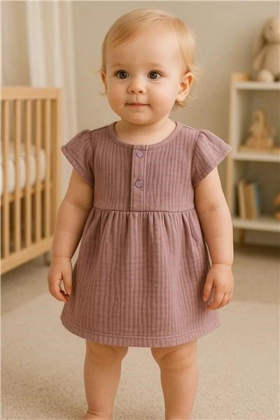 Licht en ademend: de New Baby mousseline meisjesjurk in een elegante lavendeltint maakt elke kleine dame blij. De A-lijn, korte mouwen en subtiel gerimpeld rokje zorgen voor maximaal comfort en bewegingsvrijheid. De knoopsluiting aan de voorkant maakt aan- en uitkleden eenvoudig, en de hoogwaardige mousseline van puur katoen is zacht voor de gevoelige kinderhuid. Ideaal voor warme dagen en dankzij de certificering OEKO-TEX STANDARD 100 voldoet de jurk aan strenge veiligheidsnormen. Geniet van het zachte, ademende en prettige materiaal voor dagelijks gebruik.