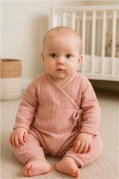 Ontdek het comfort van de mousseline onesie van New Baby in een zachte roze tint. Dankzij het wikkelmodel trek je hem snel aan zonder onnodig over het hoofd te hoeven trekken. De praktische striksluiting aan de zijkant, aangevuld met een binnenknoopje, houdt de onesie netjes op zijn plaats. Drukknoopjes tussen de pijpjes maken verschonen thuis en onderweg een stuk makkelijker.
