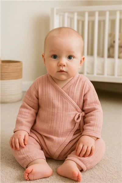 Mousseline behoort tot de zachtste en meest ademende stoffen – het “ademt” uitstekend, voert warmte af en verkleint het risico op oververhitting. Dankzij dit is de New Baby onesie ideaal voor dagelijks dragen en slapen, en wordt na elke wasbeurt nog zachter en aangenamer.