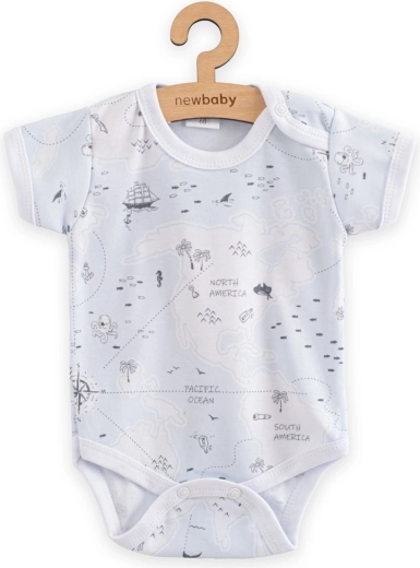 Comfortabele en stijlvolle babyromper met korte mouwen New Baby For Babies in het thema ocean, gemaakt van 100% katoen. Volledig bedrukt speels design, eenvoudige drukknoopsluiting op de schouder en tussen de beentjes, en OEKO-TEX STANDARD 100-certificering garanderen veiligheid en comfort voor de gevoelige babyhuid.