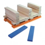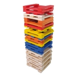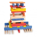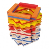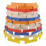 De set bevat 100 stevige, gladde plankjes in natuurlijke en opvallende kleuren – ideaal voor torens, huisjes en originele constructies.