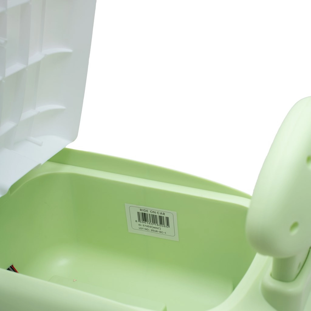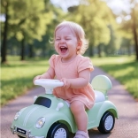 Stijlvolle kinderloopfiets BABY MIX Kiddo Cruiser in mint die kinderen veilig laat spelen, zowel binnen als buiten. Biedt comfortabele zit met rugleuning, een ergonomisch stuur voor gemakkelijk rijden, opbergruimte onder het zadel en stabiele vier wielen. Voor extra plezier zorgen voorste LED-lampen en ingebouwde melodieën, die bewegen leuk maken en de motoriek stimuleren.