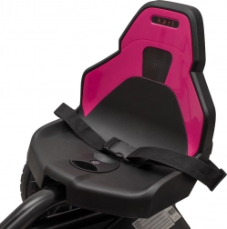 Het lichte maar duurzame metalen frame en de kunststof kappen in een aantrekkelijke stijl zijn eenvoudig te onderhouden. De verstelbare zitting groeit mee met het kind en de volledig afgeschermde ketting beschermt kleine vingers. Het sportstuur zorgt voor een realistische rijervaring en ondersteunt de ontwikkeling van motoriek en coördinatie.