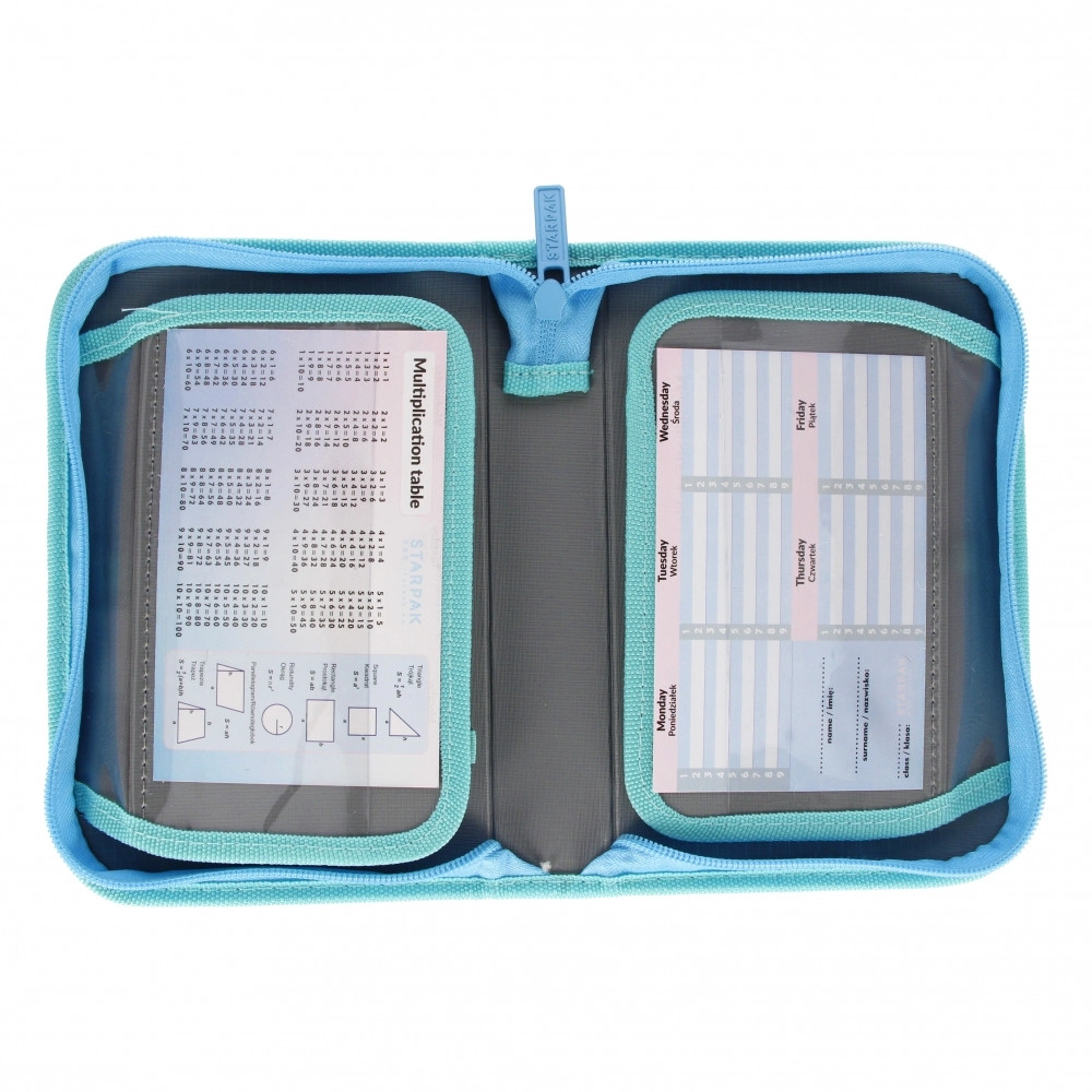 • Overzichtelijke organisatie – elastische houders en verdelers voor pennen, potloden, liniaal of gum.