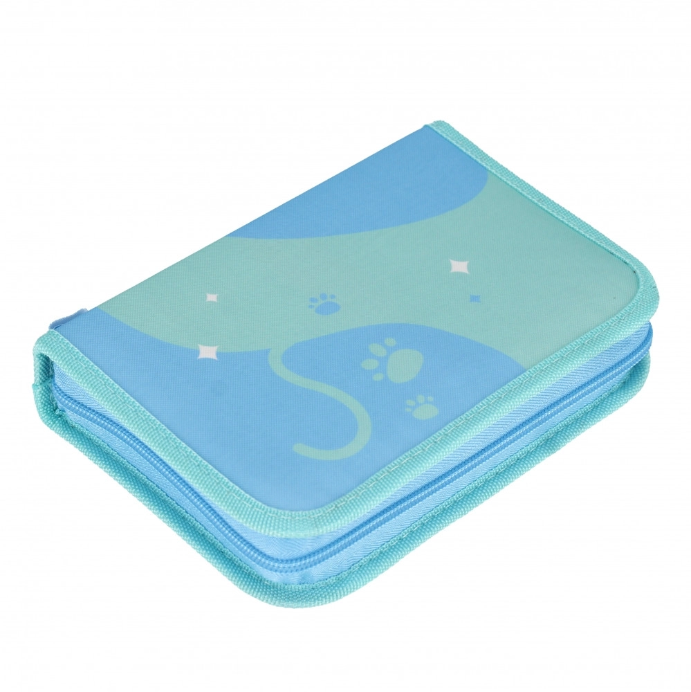 Uitgeklapt heeft de etui een lengte van ca. 31 cm, wat voldoende ruimte biedt en toch compact blijft voor in een schooltas of rugzak. Het speelse kattenmotief en de zachte kleuren zullen alle dierenliefhebbers aanspreken.