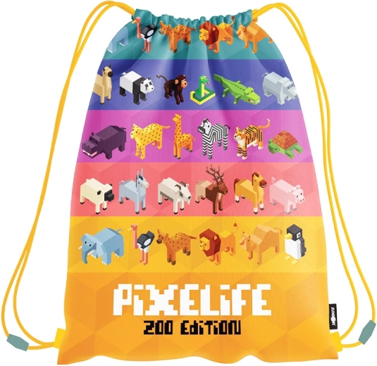 Praktische en lichte zak met Pixel Zoo-motief van 39 × 33 cm, ideaal voor clubjes, kleuterschool of uitstapjes. Biedt eenvoudig aantrekken met koordjes, is duurzaam en geschikt voor kinderen vanaf 3 jaar. Een geweldige keuze voor het meenemen van gymschoenen, sportkleding of kleine spullen voor onderweg.