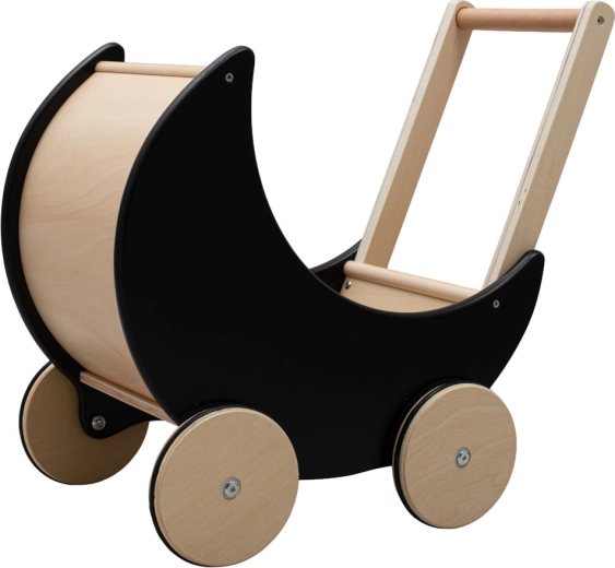 Stijlvolle houten kinderwagen en loopwagen 2-in-1 Montessori BABY MIX in elegante zwarte kleur ondersteunt de eerste stapjes en de motorische ontwikkeling. Biedt stabiele steun tijdens het lopen, voldoende ruimte om te spelen en een veilige afwerking met afgeronde randen. Ideaal voor kleine ontdekkers vanaf 12 maanden.