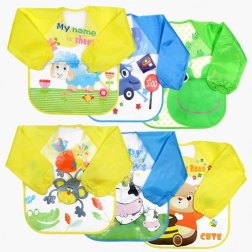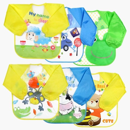 Praktische kinderkiel met mouwen beschermt kleding tijdens knutselen, schilderen en eten. Beschikbaar in meerdere speelse designs, gemakkelijk aan te trekken en ideaal voor kinderen van 2–4 jaar.