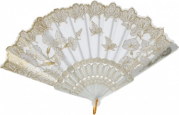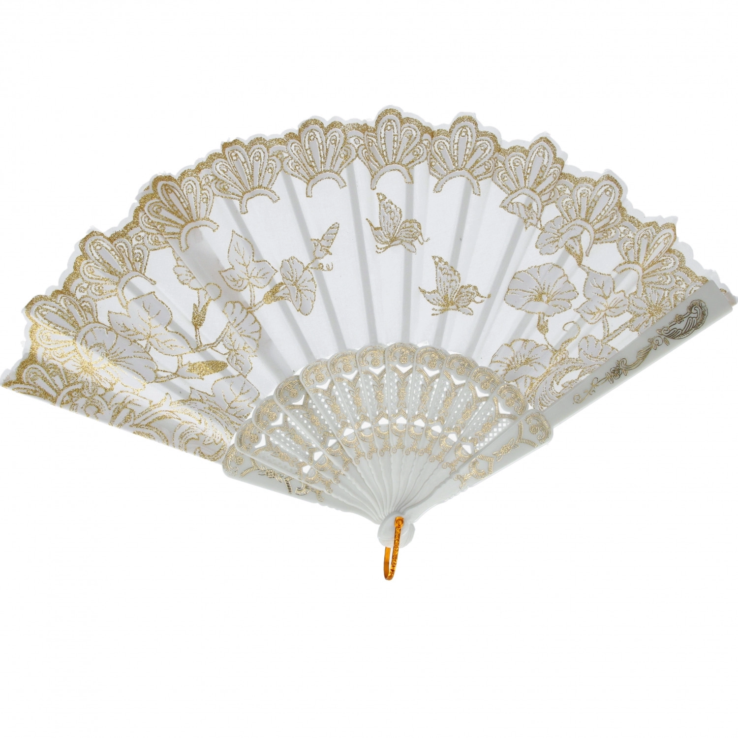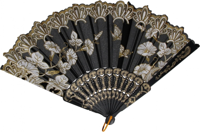 Deze decoratieve opvouwbare waaier combineert praktische bruikbaarheid met esthetiek. Dankzij het compacte formaat van 23 cm past hij in je handtas of rugzak en zorgt hij direct voor een aangename bries. Stoffen panelen met een subtiel bloemenpatroon en gouden accenten zorgen voor een stijlvolle en elegante uitstraling.