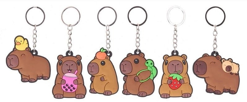 Schattige sleutelhanger met kapibara-motief van 5,5 cm. Verkrijgbaar in meerdere varianten, prijs per stuk. Ideaal als klein cadeautje en leuke accessoire voor sleutels of rugzak voor kinderen vanaf 3 jaar. Compact formaat, lichtgewicht en meerdere varianten om uit te kiezen.