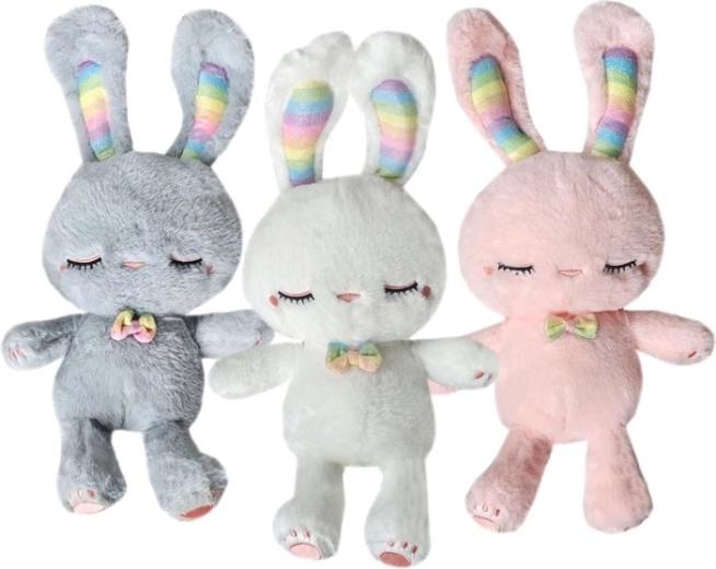 Schattig pluchen konijntje Joe met een hoogte van 30 cm, heerlijk zacht en ideaal om mee te knuffelen. Verkrijgbaar in een mix van drie kleuren – roze, wit of grijs. Een geweldig cadeau voor kinderen en liefhebbers van knuffels.