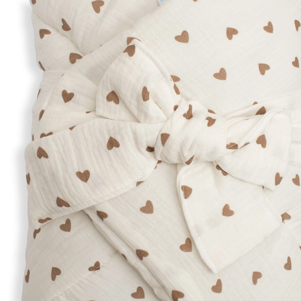 Ontdek het comfort en de zachtheid van mousseline – een van de puurste en zachtste stoffen. Dankzij de lichte en ademende structuur ademt mousseline uitstekend, is hij bestand tegen veelvuldig wassen en wordt hij na verloop van tijd zelfs nog zachter. De NEW BABY Little Heart-inbakerdoek met schattige hartjesprint helpt je baby zich te voelen als in mama’s buik en biedt meer rust en geborgenheid.
