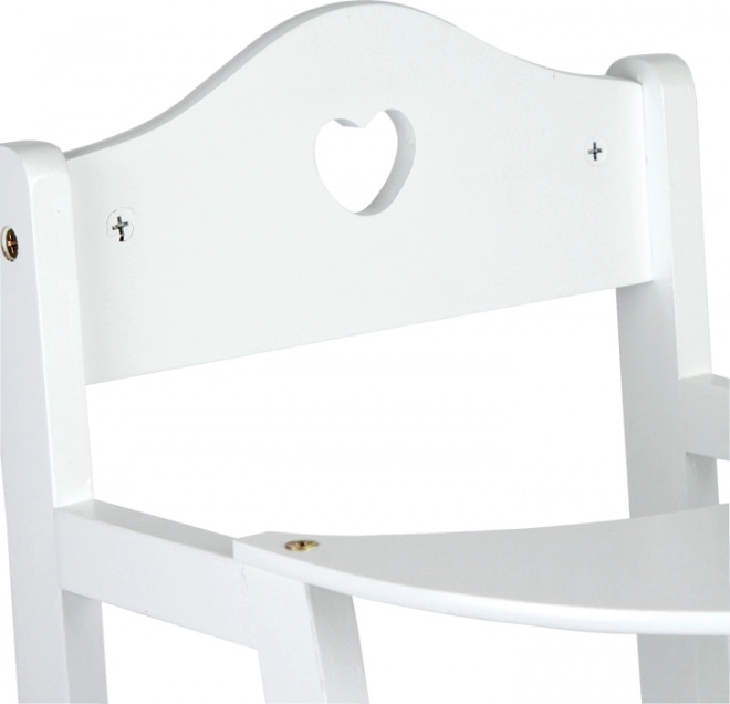 Dit houten kinder-etenstoeltje voor poppen in zuiver wit is een stijlvolle aanvulling voor de kinderkamer en woonkamer. De subtiele hartjesuitsparing in de rugleuning geeft een schattige uitstraling, terwijl de stevige constructie zorgt voor veilig en langdurig speelplezier.