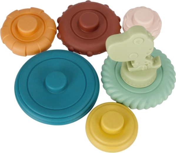 De BAB BAM stapelpyramide met dinosaurus is een ideale sensorische speelgoed voor baby’s en peuters. Gekleurde ringen met verschillende oppervlakken (groeven, bobbels, golfjes) nodigen uit tot ontdekken, kauwen en stapelen op de middenpen. Het kind traint spelenderwijs de greep, het sorteren op grootte en de coördinatie.