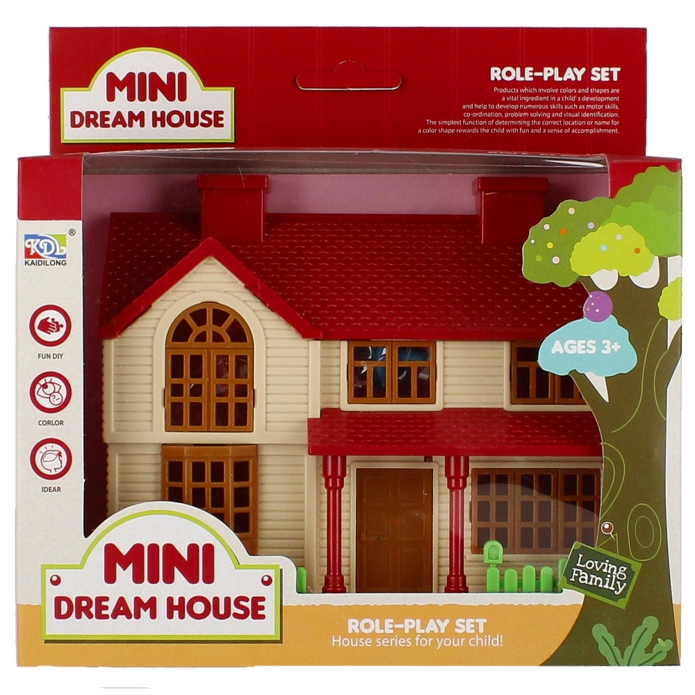 De verpakking bevat een huisje, een kleine pop en meubels voor de slaapkamer en badkamer, zodat het spelen meteen kan beginnen.