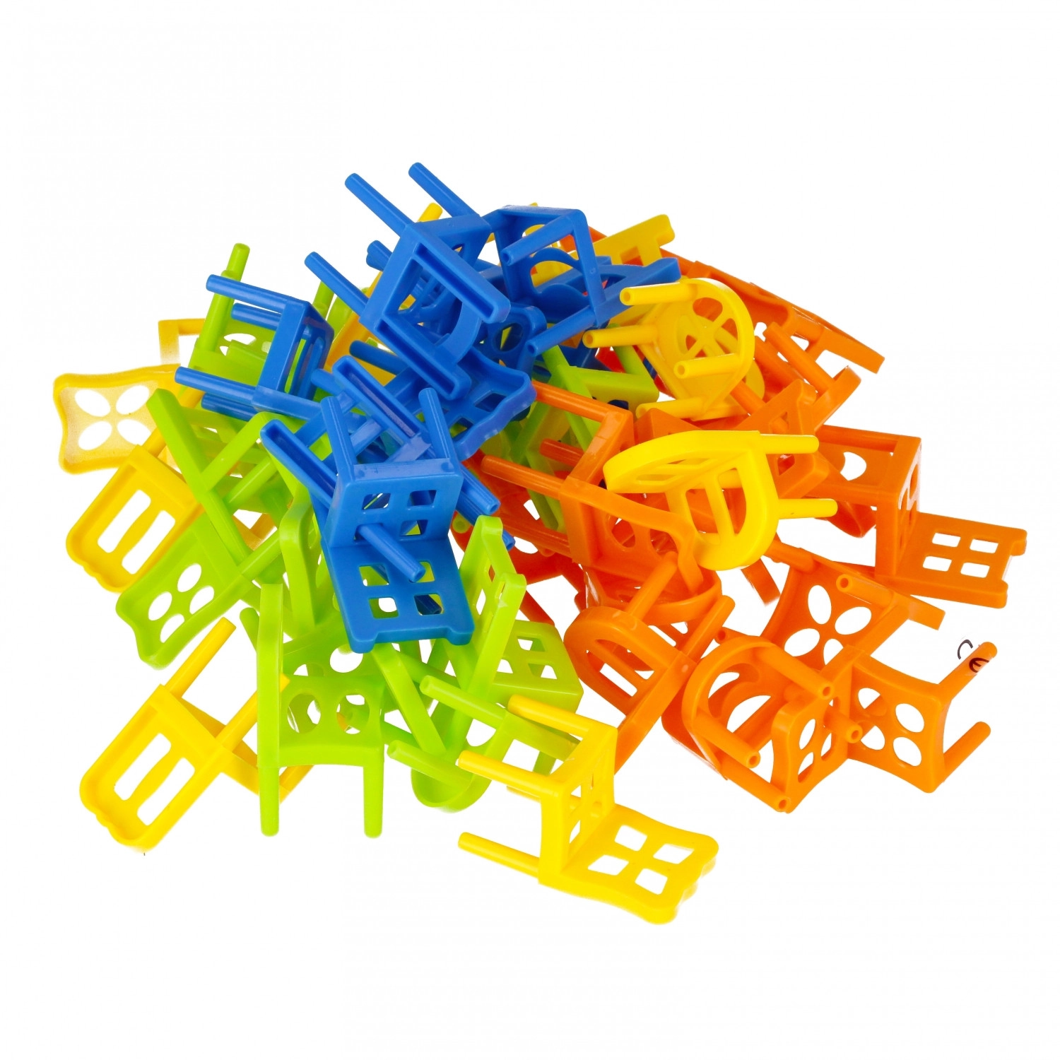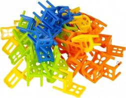 Een leuk familiespel waarbij spelers om de beurt plastic stoeltjes opstapelen en proberen te voorkomen dat de toren omvalt. De set bevat 60 stoeltjes, stimuleert fijne motoriek, geduld en strategie. Ideale gezelschapsactiviteit voor kinderen vanaf 3 jaar.