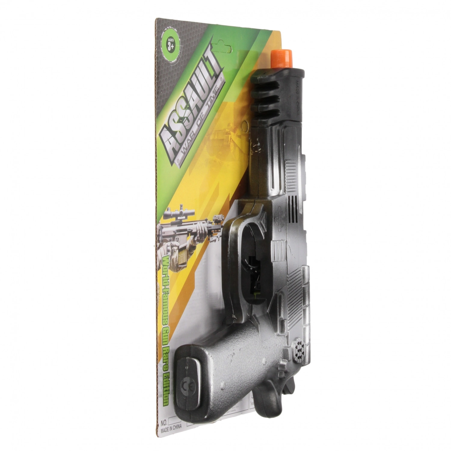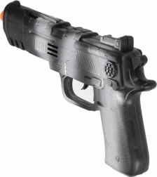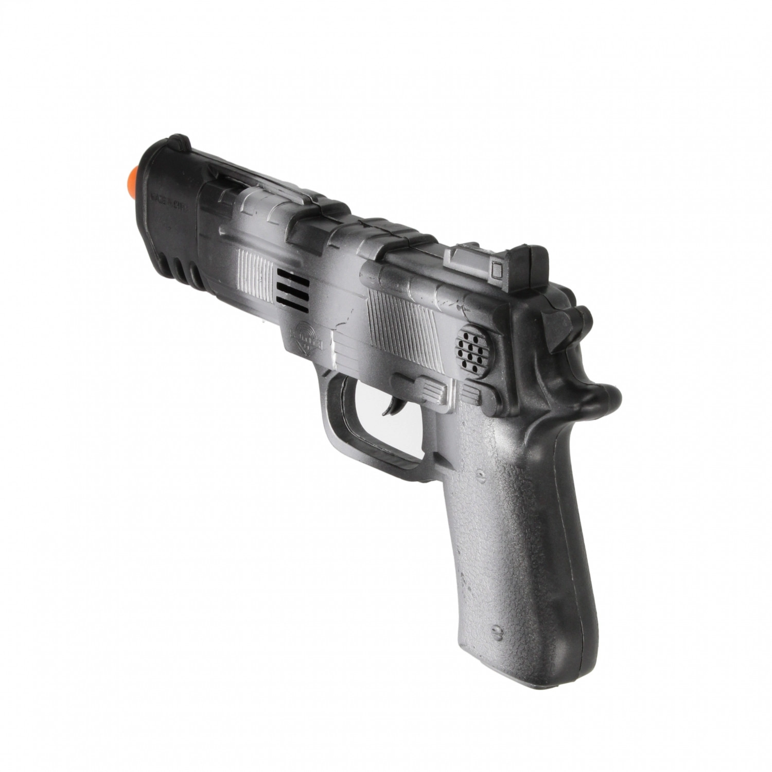 Dit speelgoedvuurwapen is een geweldige aanvulling op kinderspellen en verkleedkleding. Bij het overhalen van de trekker produceert het realistische geluidseffecten die de verbeelding en het speelse plezier stimuleren. Dankzij de compacte afmetingen ligt het ook bij kleinere kinderen goed in de hand.