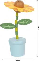 Een schattige houten dansende bloem in een bloempotje verrukt zowel kinderen als volwassenen. Bij het indrukken van het onderste deel begint de bloem zachtjes te bewegen – de stelen golven en de bloem wiegt. Dit eenvoudige maar fascinerende speeltje ontwikkelt fijne motoriek, coördinatie en bewegingsperceptie. Dankzij het robuste hout, het gladde oppervlak en het compacte formaat ligt het perfect in kleine handjes. Prijs per stuk, er zijn 5 kleuropties beschikbaar, verzending willekeurig.