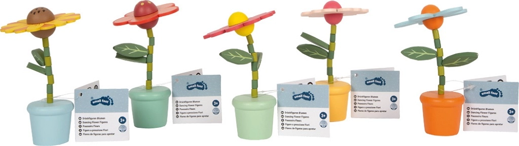 - Interactief principe – door op het onderste deel te drukken gaat de bloem wiebelen en “dansen”.