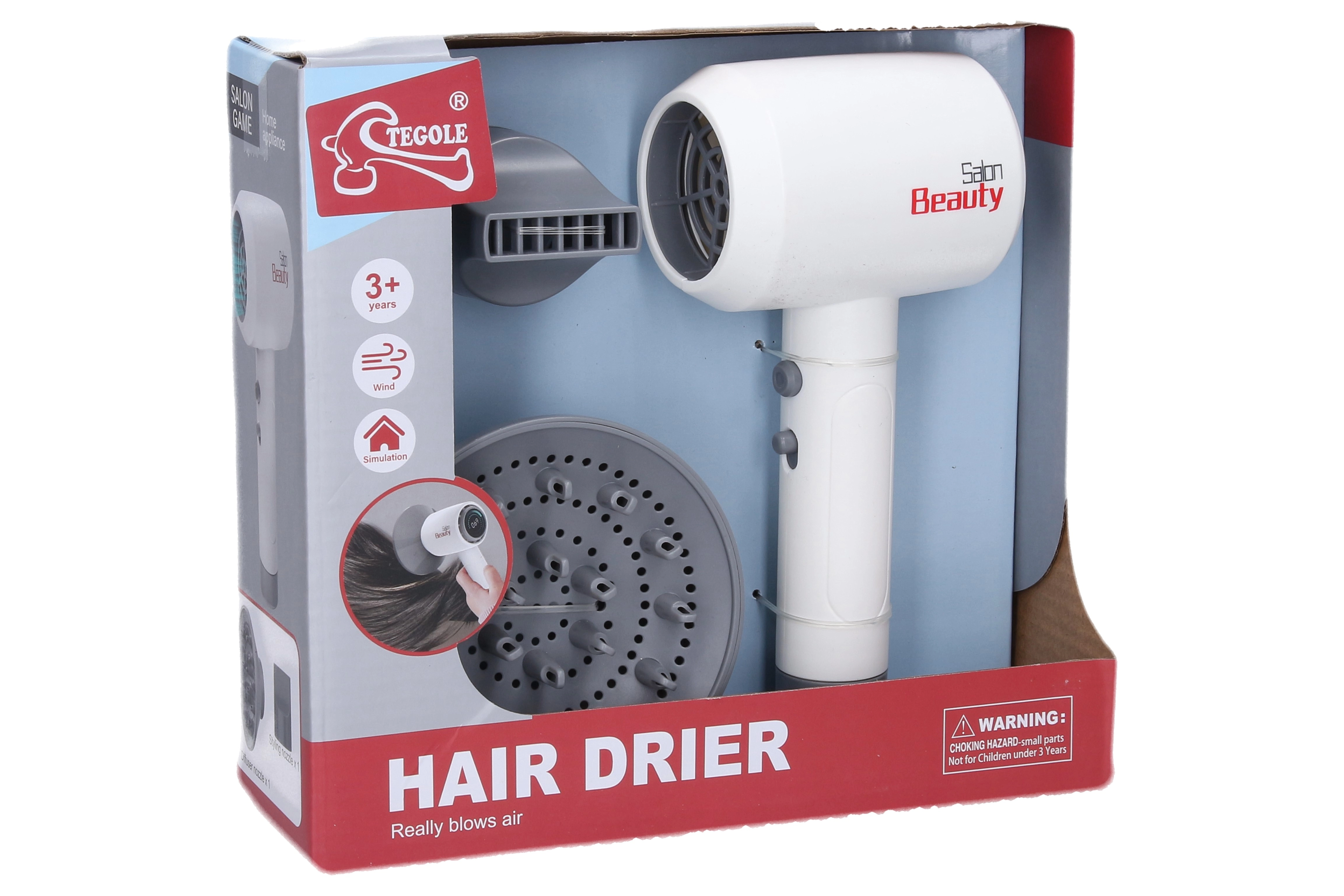 Het speelgoed is ontworpen voor veilig thuisplezier – het heeft een aan/uit-knop en één decoratieve knop zonder functie. De föhn werkt op 1× AA-batterij (niet inbegrepen), zodat hij gemakkelijk overal mee naartoe kan.