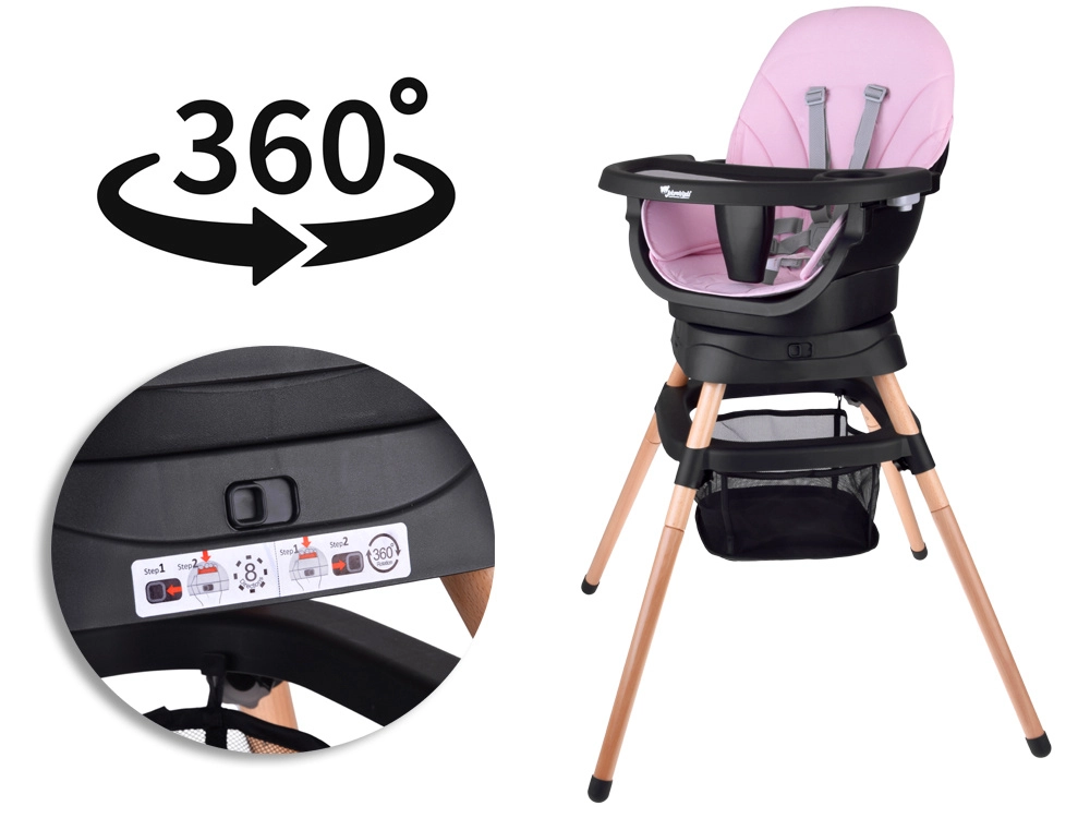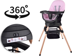 Deze multifunctionele 6-in-1 stoel past zich eenvoudig aan elke ontwikkelingsfase van je kind aan – van de eerste hapjes tot zelfstandig zitten en spelen. Dankzij de draaibare zitting met 360° en 8 vergrendelposities en de veilige vijfpuntsgordel biedt hij maximaal comfort en veiligheid. Het afneembare, ergonomisch gevormde blad maak je in een oogwenk schoon onder de kraan of in de vaatwasser.