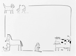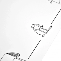 Minimalistische zwart-witte dierenillustraties geven de eettafel een speelse look en passen perfect in een modern interieur.