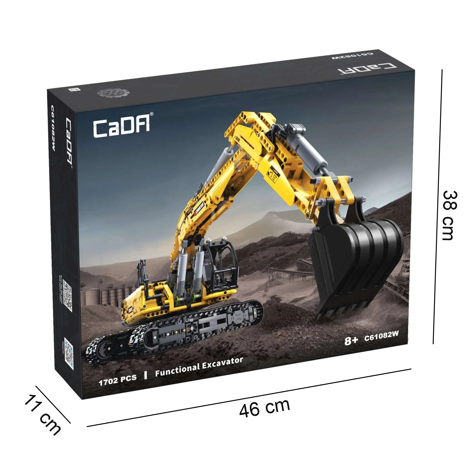 Bouw een realistische rupsgraafmachine van het merk CADA uit 1702 onderdelen op schaal 1:20. Het model valt op door de gedetailleerde afwerking, 360° draaibare giek en bewegende bak. Twee robuuste rubberen rupsbanden zorgen voor soepele verplaatsing op diverse ondergronden. De onderdelen zijn compatibel met andere CADA-sets en het model kan worden uitgebreid met afstandsbediening (niet inbegrepen).