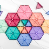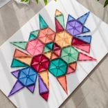 De pastel geometrieset van CONNETIX biedt transparante magnetische tegels die dankzij de krachtige ingebouwde magneten eenvoudig en stevig aan alle zijden verbinden. Kinderen kunnen 2D-patronen en 3D-bouwwerken maken – van sterren en mozaïeken tot bruggen, torens en raketten – en ondertussen spelenderwijs logisch denken, creativiteit en motoriek ontwikkelen.