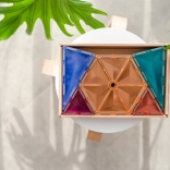 Bevat driehoeken en zeshoeken voor het bouwen van 2D-motieven en 3D-objecten. Ideaal voor het ontwikkelen van symmetrie, ruimtelijke relaties en patronen.