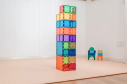 CONNETIX is een bekroond Australisch merk dat kinderen inspireert om wetenschap en creativiteit te ontdekken via spel. De set met 42 vierkante tegels in regenboogkleuren is een geweldige start voor het bouwen van torens, kastelen, bruggen en raketten. Neodymiummagneten houden stevig vast aan elke zijde en de transparante panelen laten verbindingen en lichteffecten prachtig zien.
