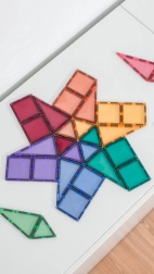 De Pastel Mini Pack van CONNETIX biedt de ideale start in magnetisch bouwen. Kinderen verbinden de transparante tegels moeiteloos en creëren kastelen, bruggen en raketten, terwijl ze spelenderwijs leren over geometrie, magnetisme en balans. Hoogwaardig ABS-plastic zonder BPA en ftalaten en stevige, geklonken verbindingen zorgen voor een lange levensduur, zelfs bij intensief gebruik.