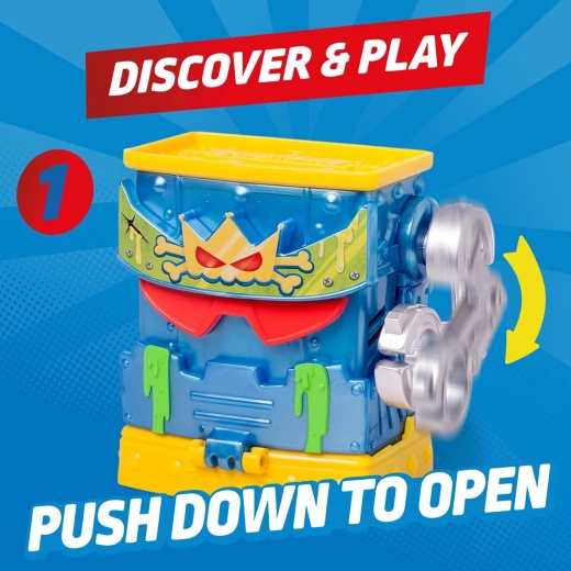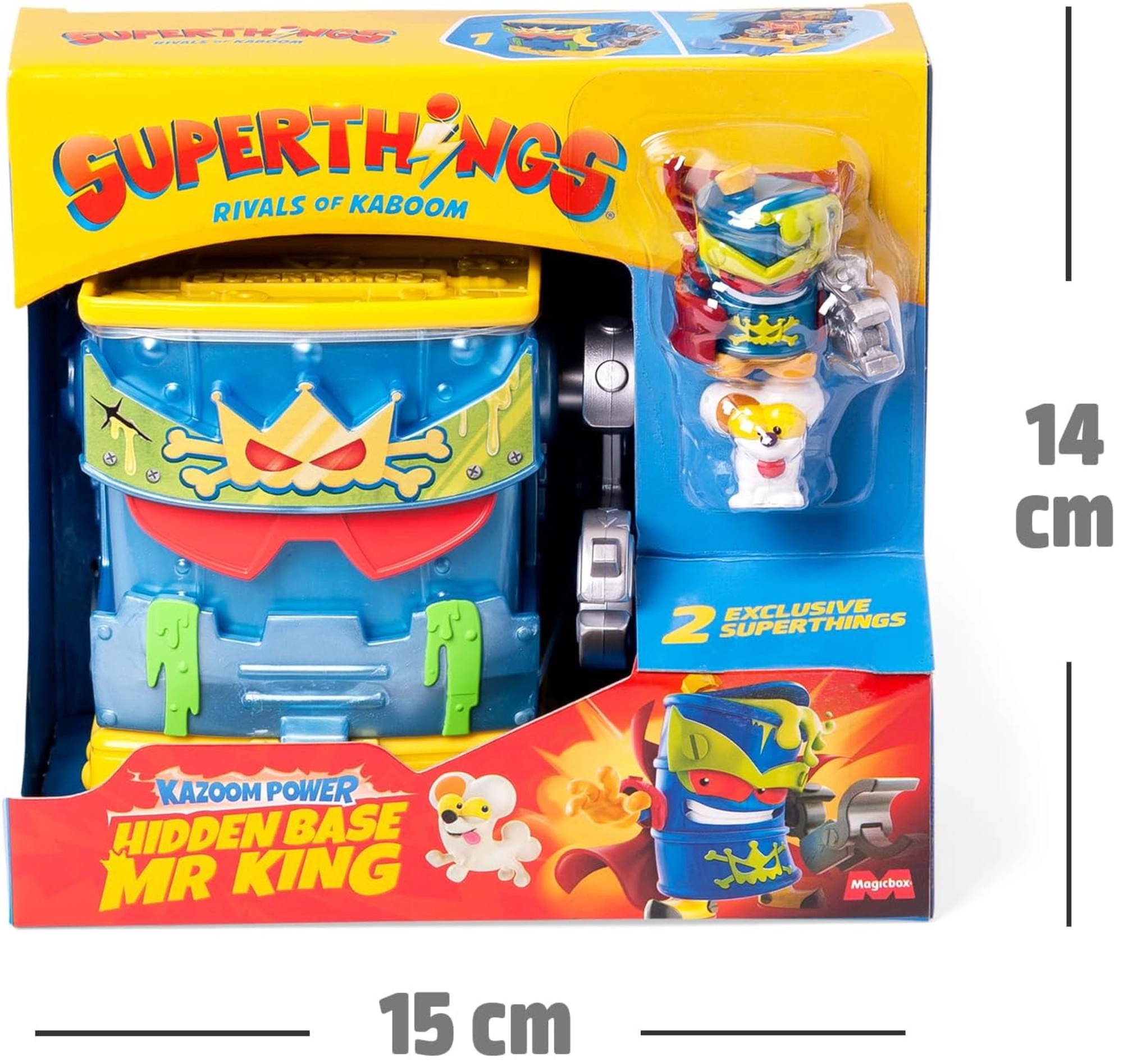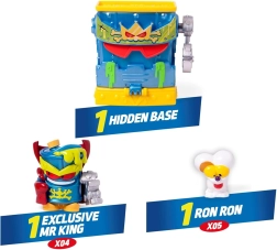 Omzeil de verdedigingsmechanismen, verzamel waardevolle Kazoom-energiekapsels en word de held van Kaboom City. De Geheime Basis van MR KING zit vol verrassingen – draaibare en schuifpanelen, valse deuren en slimme vallen testen je snelheid en vindingrijkheid. De set is ideaal voor solo-spel of een duel met z’n tweeën.