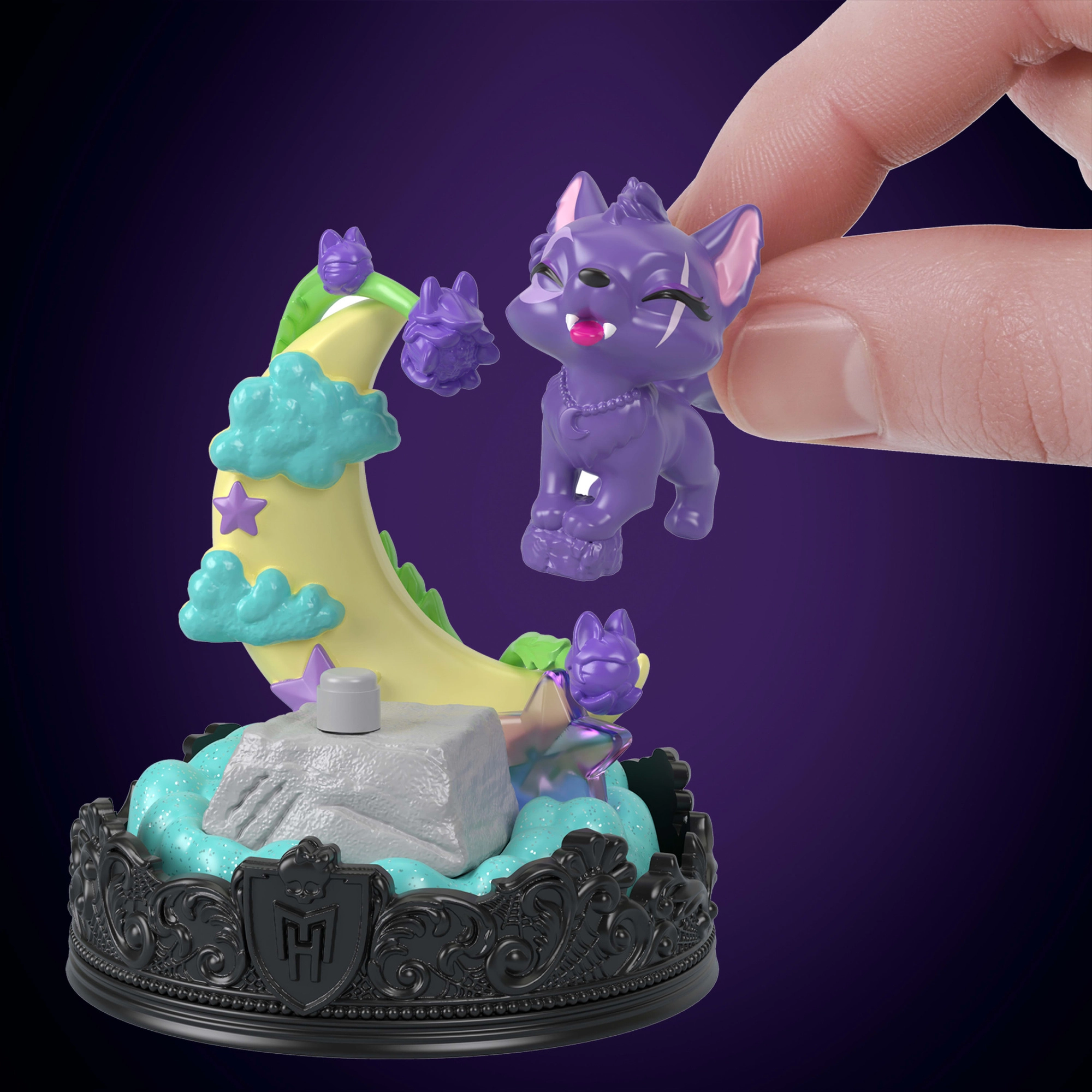 Het Crescent-figuurtje is geïnspireerd op de geliefde wereld van MONSTER HIGH en zal alle fans van Clawdeen Wolf bekoren. De lichte clip-hanger is eenvoudig vast te maken aan een rits, lus van een rugzak of sleutels, zodat de “kleine monsterlijke zoo” altijd binnen handbereik is.